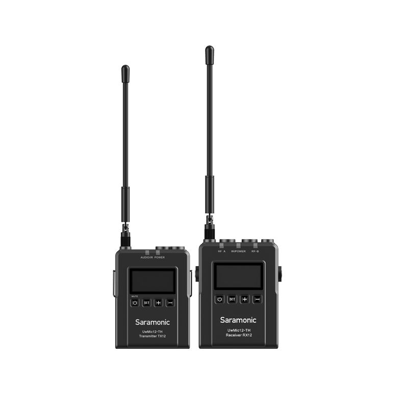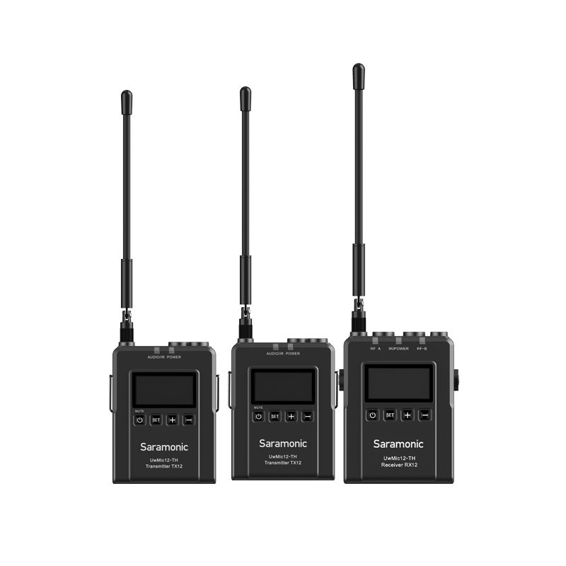 Saramonic ไมค์ไวเลส UwMic12TH เป็นชุดไมโครโฟนไร้สายที่พัฒนามาจากรุ่น ที่ยอดนิยมของคนไทย Saramonic Uwmic12-TH ที่รองรับการเชื่อมต่อไมค์ได้ถึง 2 ตัวในเวลาเดียวกัน และยังมีไมค์ให้เลือกซื้อได้หลายรูปแบบ โดยมีการปรับช่วงความถี่ให้ได้มาตรฐานตามประกาศของ กสทช ฉบับใหม่ อีกทั้งยังมีการปรับความนิ่งของสัญญาณ ร่วมถึงเพิ่มการใช้งานผ่านการต่อไฟ DC 5V ผ่านช่อง USB Type-C ทำให้เราสามารถใช้งานได้อย่างต่อเนื่องโดยไม่ต้องกลัวแบตจะหมด หมาะสำหรับ filmmakers, Youtubers, Vloggers, และการทำ Contentsอื่นๆบน Social media ถูกออกแบบให้มีดีไซน์ที่ดูลํ้าสมัยขึ้นและแข็งแร็งทนทาน ตัวเสาอากาศ สามารถถอดได้และหมุนได้ 360° หน้าจอแสดงผลแบบ OLED สามารถชาร์จแบตเตอรรี่ในตัว มาพร้อม ไมโครโฟนไร้สาย DK3Aที่มาพร้อม Furry Windscreen เวลาใช้นอกสถานที่ ที่มีคุณภาพเสียงที่ดีกว่ารุ่นก่อนๆ