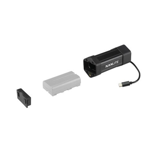 The Nanlite NP-F Battery Grip With USB-C Cable for PavoTube II 6C and LitoLite 5C. Provides an ergonomic handle for the PavoTube II 6C and LitoLite 5C as well as an additional approx. 70 mins hour of unteathered runtime at 100% brightness when equipped with an NP-F550 battery. It also features a standard 1/4 20" screw and USB-C Cable for direct connection to the PavoTube II 6C and LitoLite 5C