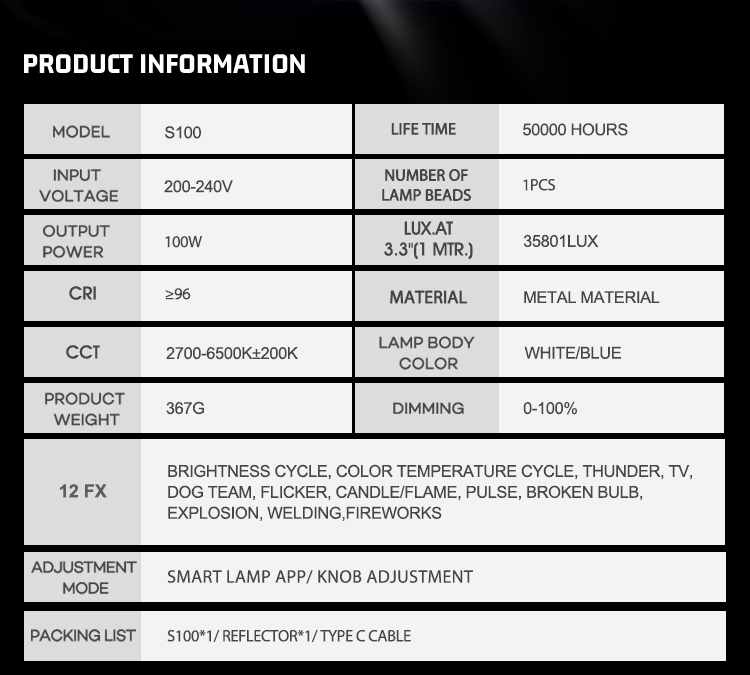 - ไฟสตูดิโอขนาดพกพา ที่ให้กำลังไฟสูงถึง 100W
